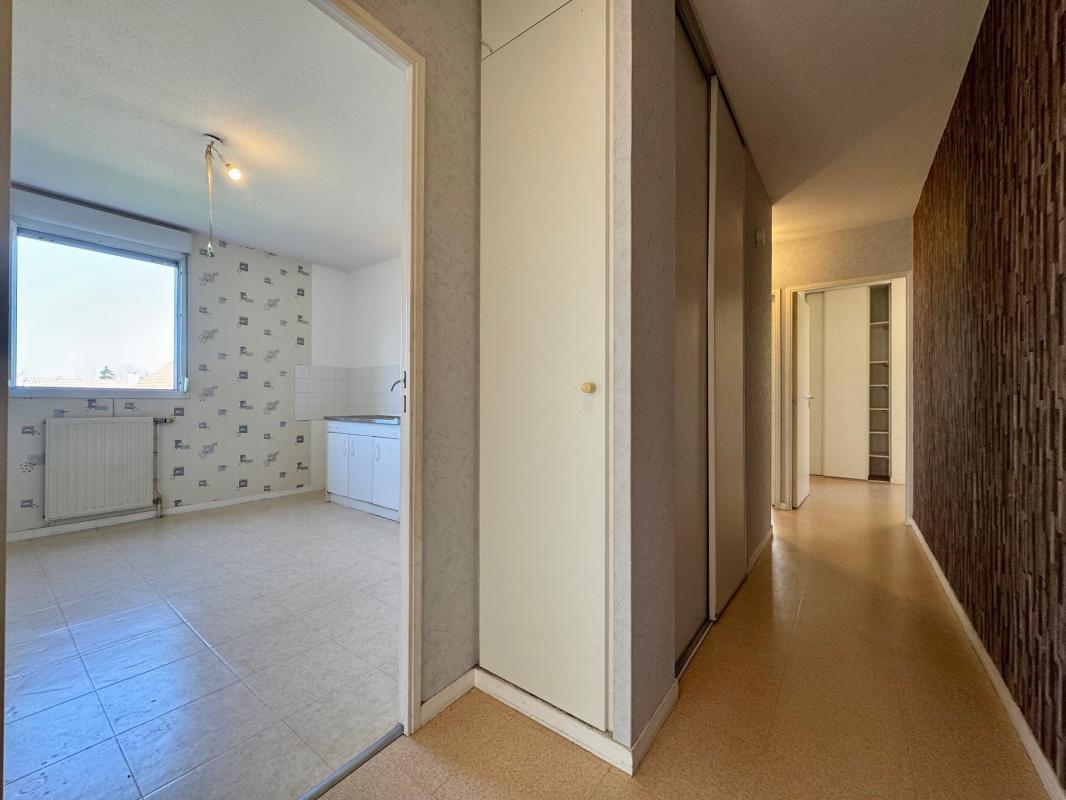 Comprend un hall d'entrée avec placard desservant une belle pièce à vivre de 21 m², cuisine séparée (pouvant être ouverte sur le séjour), 2 chambres de ~10 et 12 m², salle-de-bains et WC indépendant.