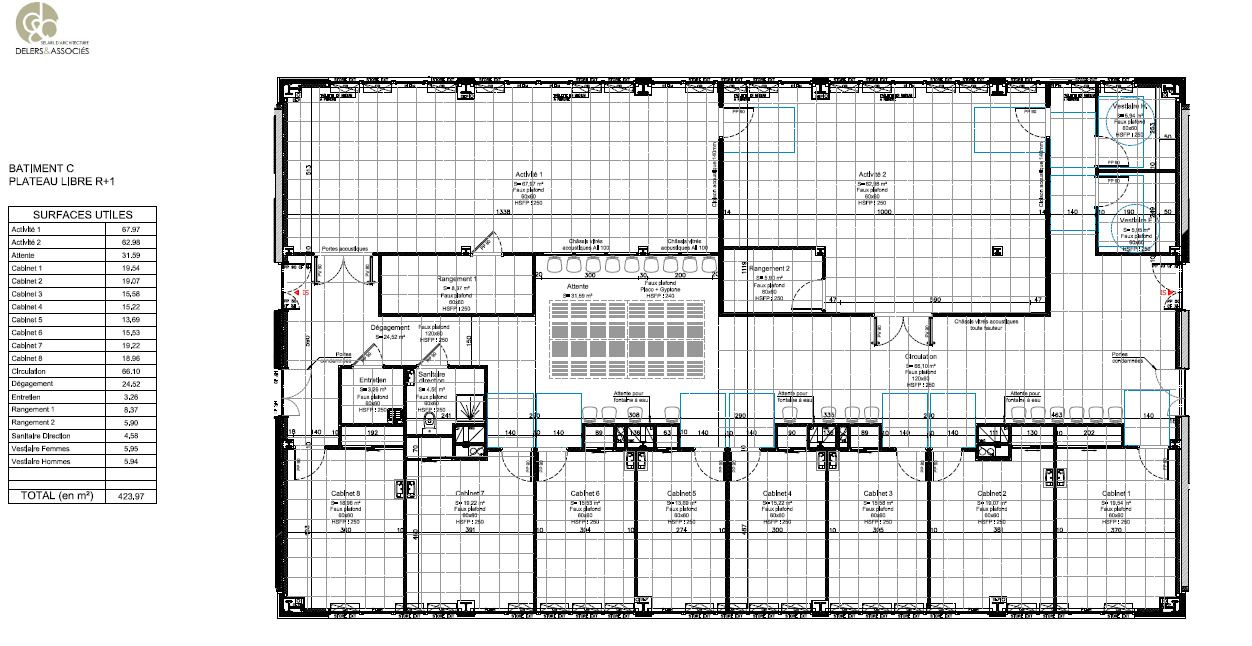 D'une pièce principale de 67.97m² + pièce de rangement de 8.37m² (nommé Activité 1 sur le plan).