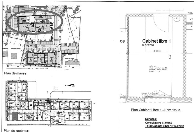 - Charges : 50€ pour le ménage des parties communes (contrat souscrit par les professionnels).